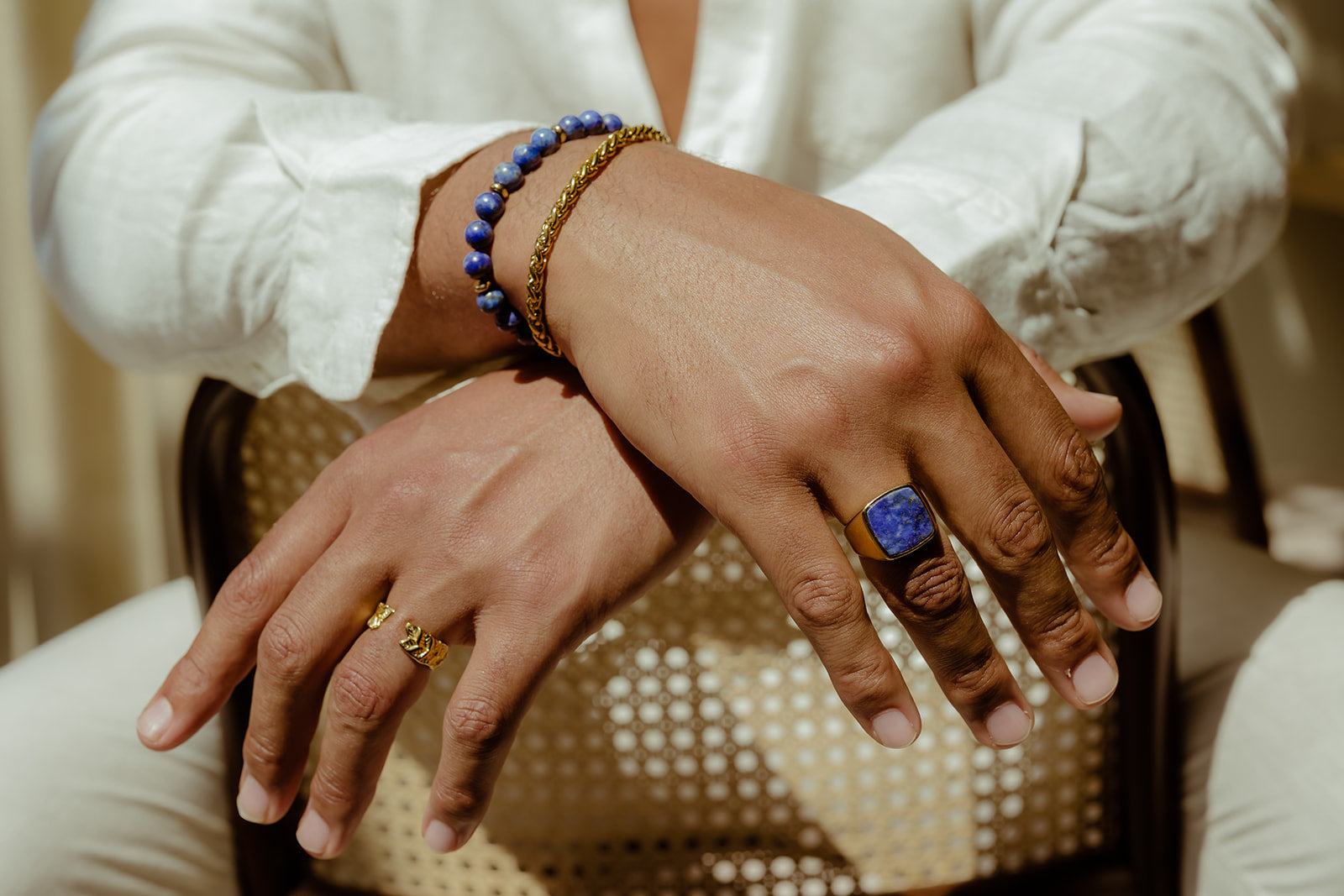 Jewelry crafted from high-grade 316L stainless steel, the same metal used in aerospace and luxury watchmaking. Built to resist water, sweat and daily wear without fading or losing its finish. Select designs are elevated with hand-cut natural gemstones, but long-term durability remains the foundation of every piece. Made to be worn every day, not taken off.